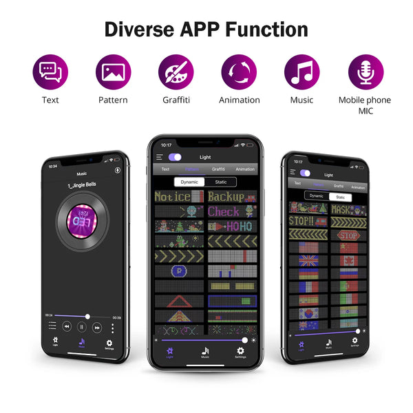 Bright and Colorful Lights: Our LED matrix boasts 2121 full-color RGB lamp beads, offering high-intensity light with low power consumption. The result? A dazzling and attractive full-color effect that grabs attention.