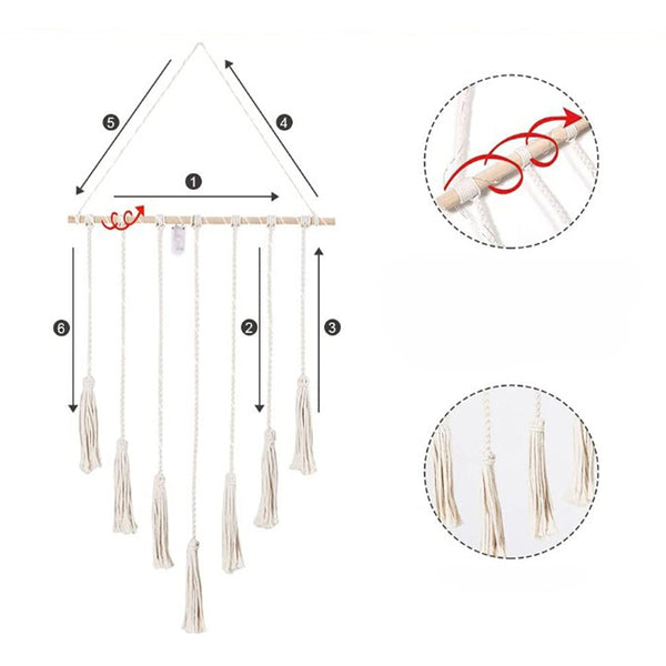 1 Hanging lighting macramé photo display,1 LED light string length 3M. The LED Light is Powered by 3AA batteries (the batteries are included)