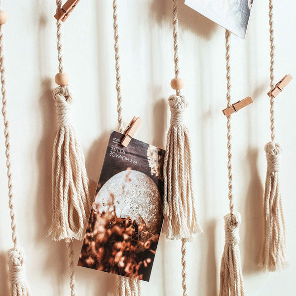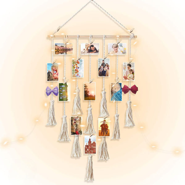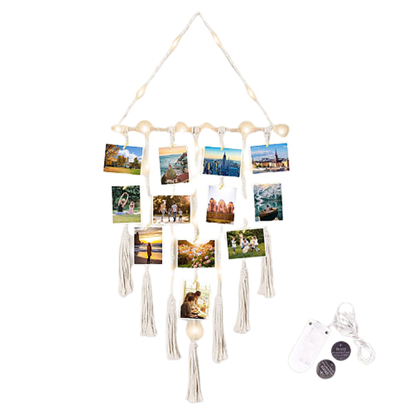 Hanging Photo Display Macramé with Light Wall Décor - Battery Powered