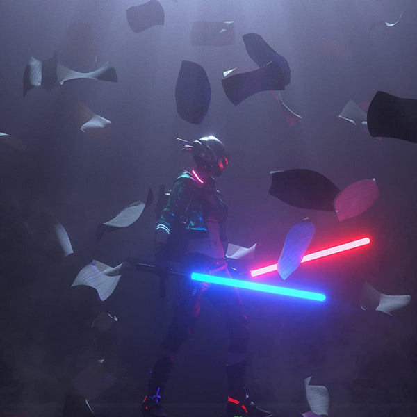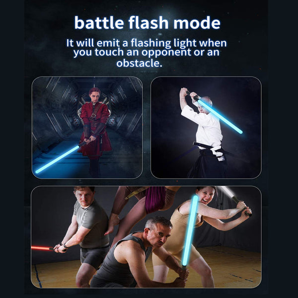 These bright glowing blades have realistic battle sounds. Both children and adults will love this dramatic sword collision sound effect, and when these toy lightsabers squeak through the air diagonally.
