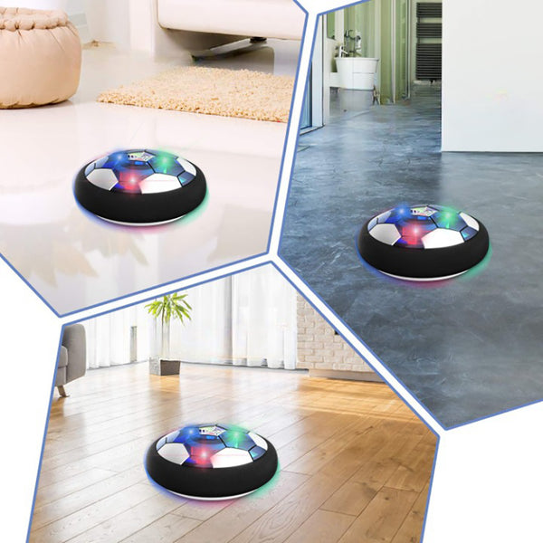 The hover soccer is made from toxic-free materials. With an upgraded performance motor, the hover ball is more reliable and hovers higher, ensures high quality gliding stability and long-lasting durability. The hover ball would get flashing when turned on, colorful soccer ball makes it preferred by children.