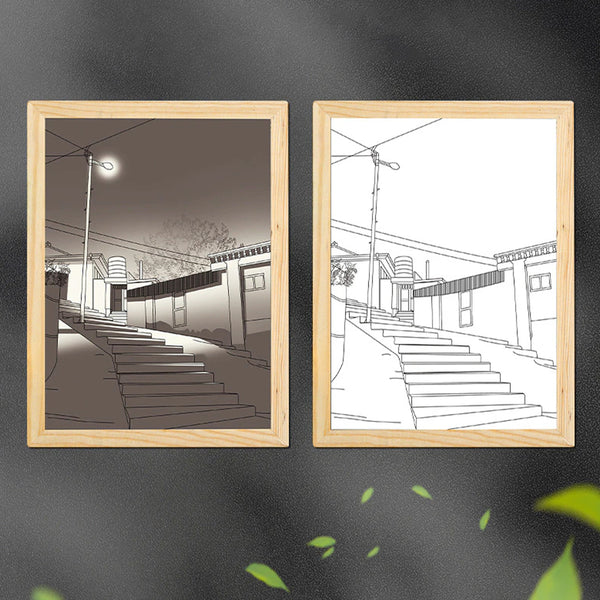 B-Hakimi basking in the sun, C-seaside scenery, D-empty house, E-Mountains and