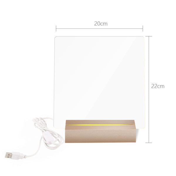The writing board’s wooden base is embedded with an LED