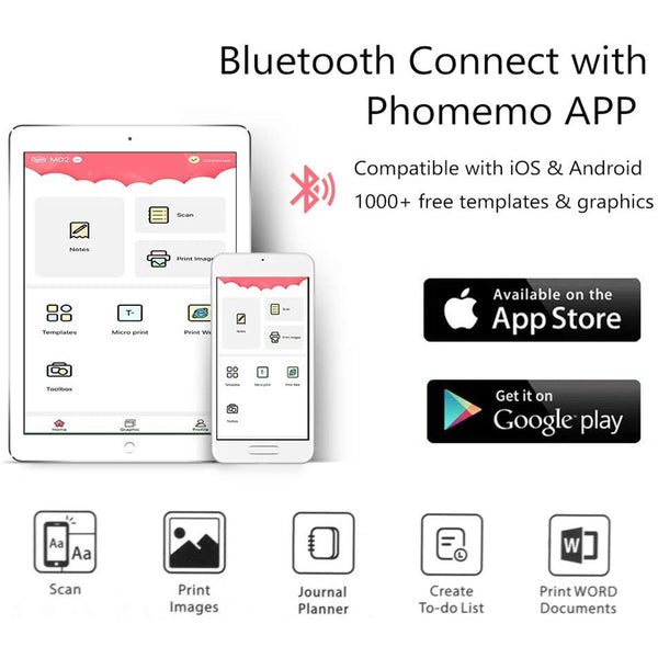 Printer supports connection via Bluetooth on your iPhone or Android device (for