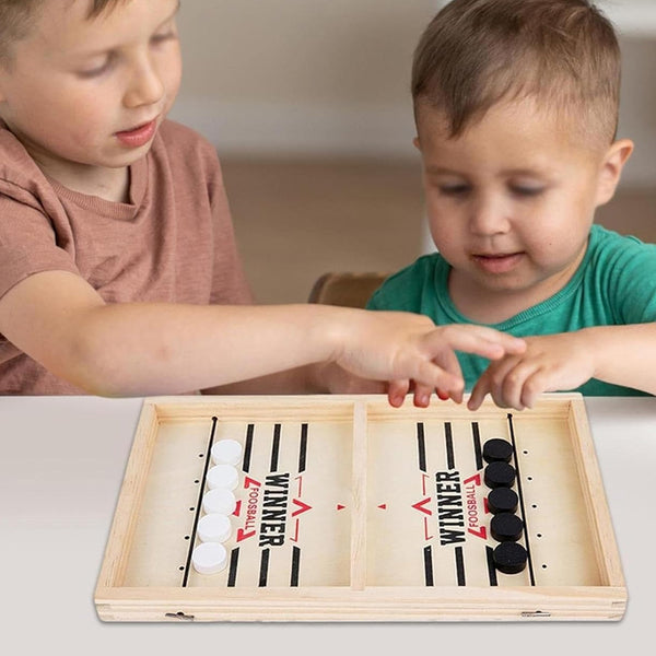 This Sports Board game helps improve kids' hand-eye coordination, lets them learn how to control the pucks and aim in the direction, and also gets the ability of the slinging strategy. It encourages children to react faster and more accurately to slings.