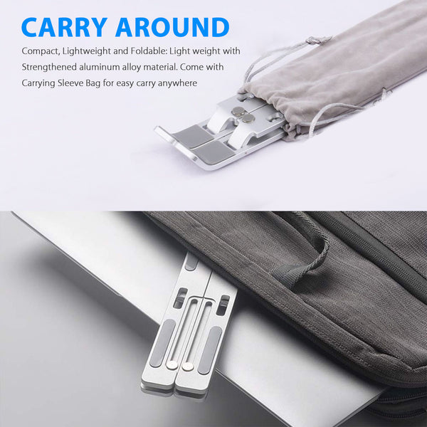 PORTABLE AND LIGHTWEIGHT: This laptop stand is free of installation, with a carrying pouch it's easy to carry to anywhere, it's ideal for people who travel and do a lot of business trips.