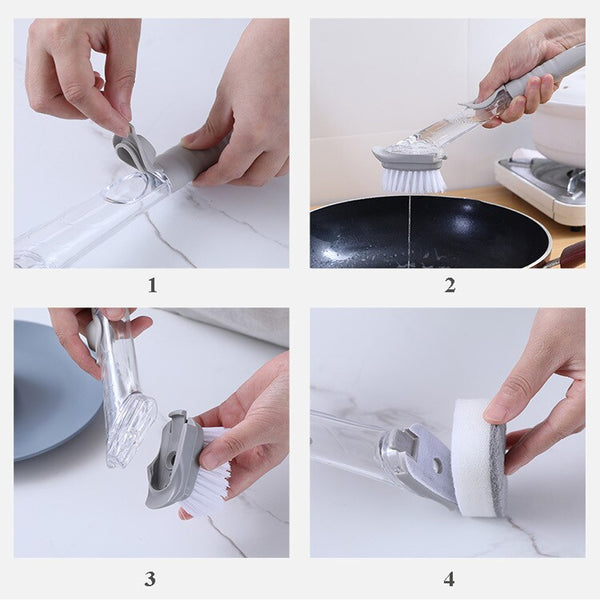 Liquid Soap Dispenser: With just one injection of detergent, it can be used to wash different dishes and helps you to scrub faster, saving time, and effort.