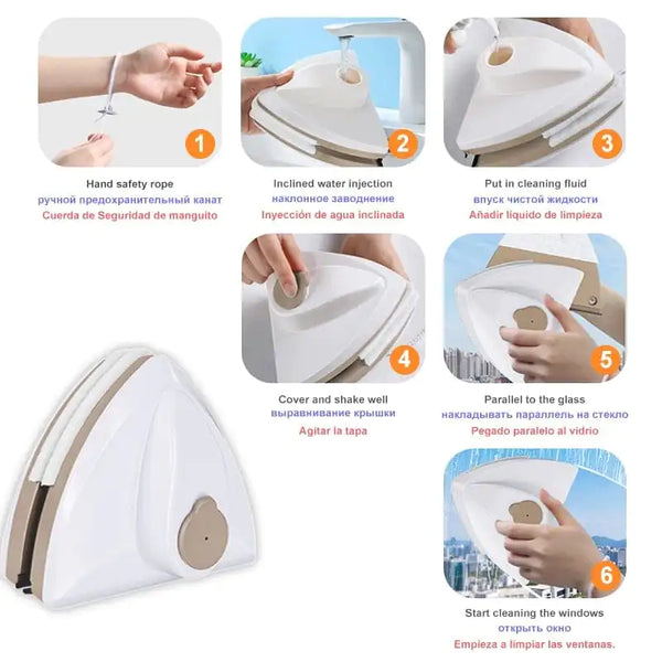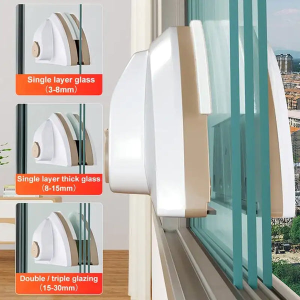 Experience the convenience of cleaning windows in high-rise buildings with ease and safety. The Magnetic Window Cleaner is designed to help you clean glass surfaces from the security and comfort of your own home. Its double-sided magnetic design keeps it securely attached to the window throughout your cleaning process, making sure it won’t slip or fall off. It is compatible with single, double, or triple-glazed windows between 0.2” to 1.4” thick, allowing you to adjust the pressure according to the type of glass used. For added safety and stability, an anti-falling rope has been included for those times when you are hesitant about standing at the window for extended periods of time. From high-rise villas to office buildings and classrooms, the Magnetic Window Cleaner will assist you through all your cleaning requirements swiftly and easily. Specifications:Material: ABS, Magnetic Steel, RubberColor: Blue, Red, BrownSize: 15 x 13cm