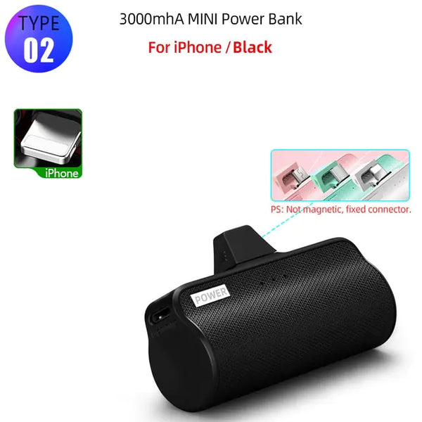 Stay powered up on the go with our Mini Power Banks, offering a reliable 5000mAh capacity. Compatible with iPhone 13, 12, 11 Pro Max, and more, these portable power banks are perfect for charging your devices on the fly. Whether you're using an iPhone, Xiaomi, or another device, these external batteries are your emergency charger solution. Stay connected and never run out of battery with these compact and efficient power banks.