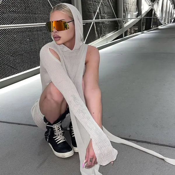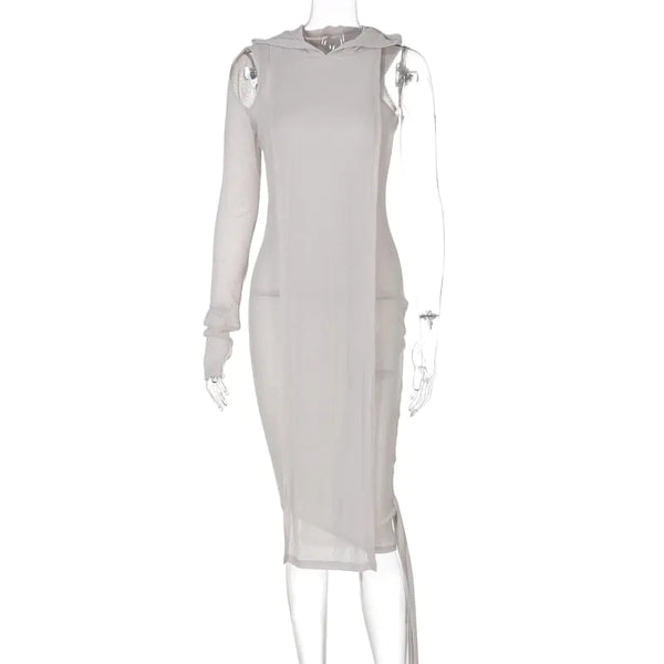 Elevate your clubwear game with our One Sleeve Knit Tight Dress. This one-sleeve, knit, asymmetric midi dress combines style and comfort effortlessly. Its skinny ribbed texture and hooded design give it a streetwear edge, making it the perfect choice for baddie-inspired outfits. Whether it's a night out or a special event, make a bold statement in this chic and trendy dress that's perfect for the fashion-forward crowd. Turn heads and strut your style with confidence in this stunning piece!