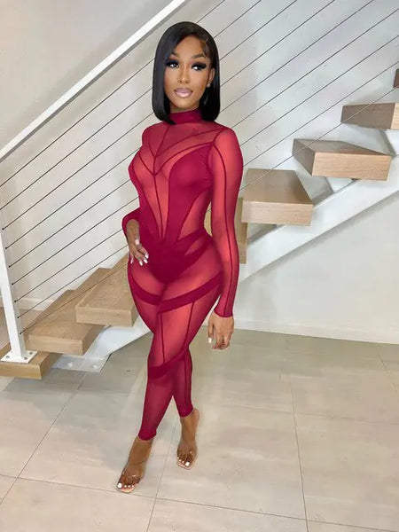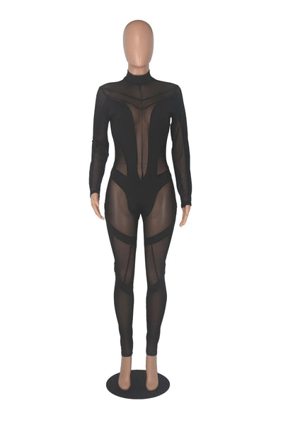 Elevate your style with the Echoine Stretch See Through Jumpsuit. This daring, skinny bodycon outfit is the epitome of sultry sophistication, designed to make a statement at any party or night club event. With its sheer mesh patchwork, it offers a tantalizing glimpse of skin, ensuring you stand out in the crowd. Unleash your inner fashionista and embrace the allure of this provocative romper, perfect for those seeking a bold, streetwear-inspired look. Whether it's a night on the town or a chic party, this jumpsuit is the ultimate choice for those who crave a combination of sexiness and style. Don't miss out on owning this versatile piece that effortlessly blends see-through mesh with edgy streetwear vibes.