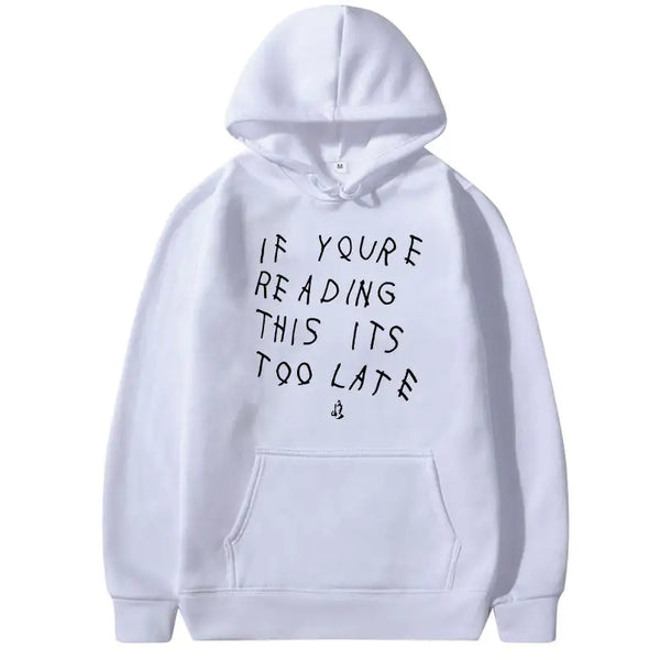 Introducing the "IT'S TOO LATE" Hoodies – where fashion meets the perfect blend of wit and comfort! Embrace the trend that's fashionably late and make a statement with these hoodies that not only keep you cozy but also showcase your sense of humor.