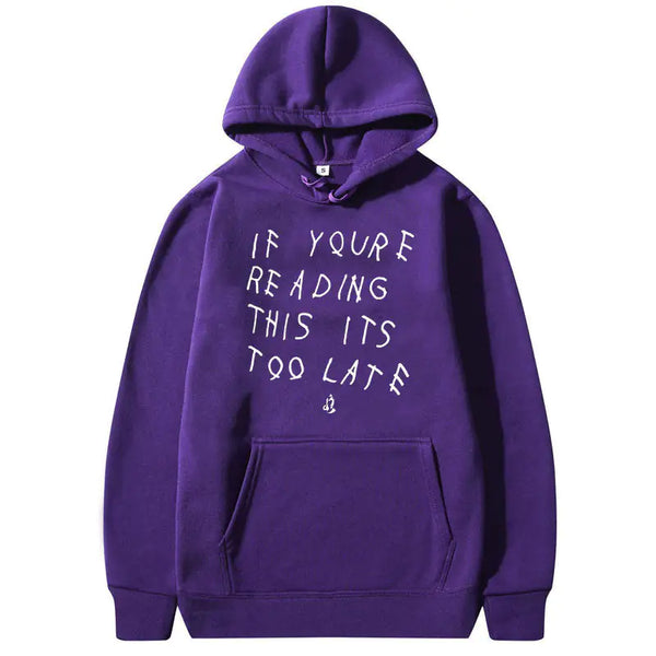 Why settle for ordinary when you can declare your fashion philosophy with a hoodie that speaks volumes? The "IT'S TOO LATE" Hoodies are more than just clothing; they're a lifestyle choice, a nod to those who appreciate the art of making an entrance.