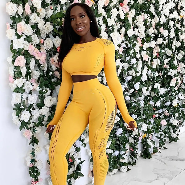 Introducing the Seamless Women Yoga Set – where style meets comfort in a seamless dance of flexibility and fashion. Unleash the power of seamless hyperflex sewing, as this high-stretch fabric set becomes your ultimate companion in the world of fitness.