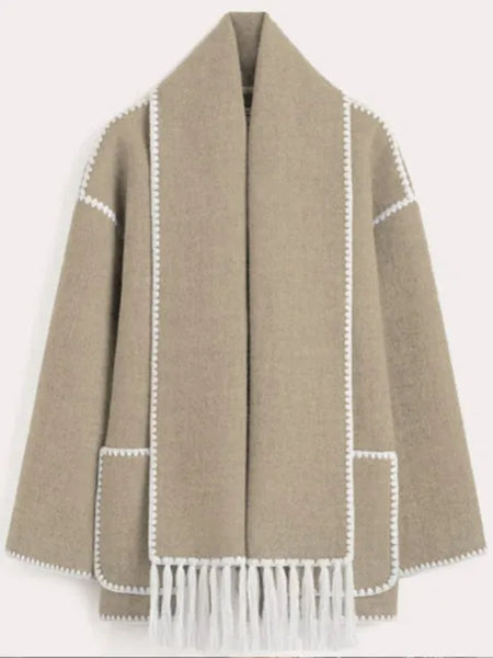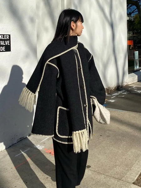 🌨️ Embrace the Winter Chill with Style – Introducing Our Faux Cashmere Splice Overcoat for Women! 🧥❄️