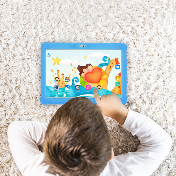 Specially designed tablet case--The case comes with a stand which can free kids from holding the tablet. Durable, lightweight case to protect against drops and bumps caused by kids at play. Made of high quality soft silicone material, the bundled case is environment-friendly and harmless to health. No need to worry about any potential harms. The soft material brings soft and smooth touch experience.