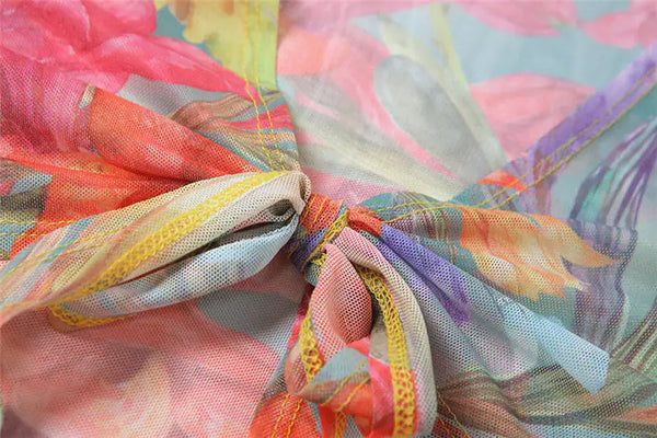 Create an eye-catching look with this 3 Piece Floral Mesh Skirt Set. This set offers a cropped top with long sleeves and a tie front, allowing you to adjust the fit as desired. The breathable mesh material features a stunning floral pattern that looks great paired with the bikini bottoms for a complete look. The sides are elastic to provide support and keep everything comfortably in place, while the mini skirt has adjustable side ruching that creates an additional touch of style. No matter what occasion, you’ll be able to create your own personal look with this great skirt set. The fabric is 100% polyester for easy maintenance, so you can enjoy wearing it again and again.