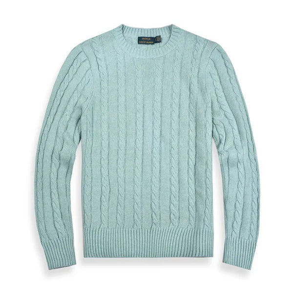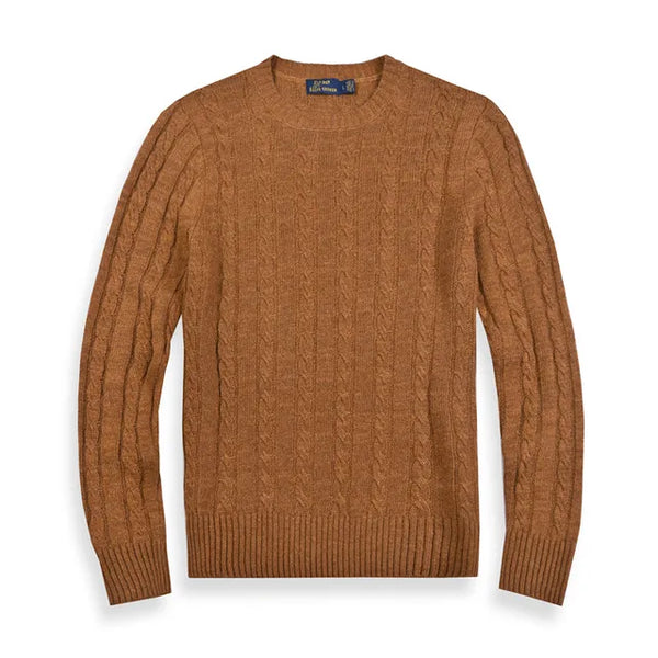 - The sweater is made of wool, which is known for its warmth and comfort.